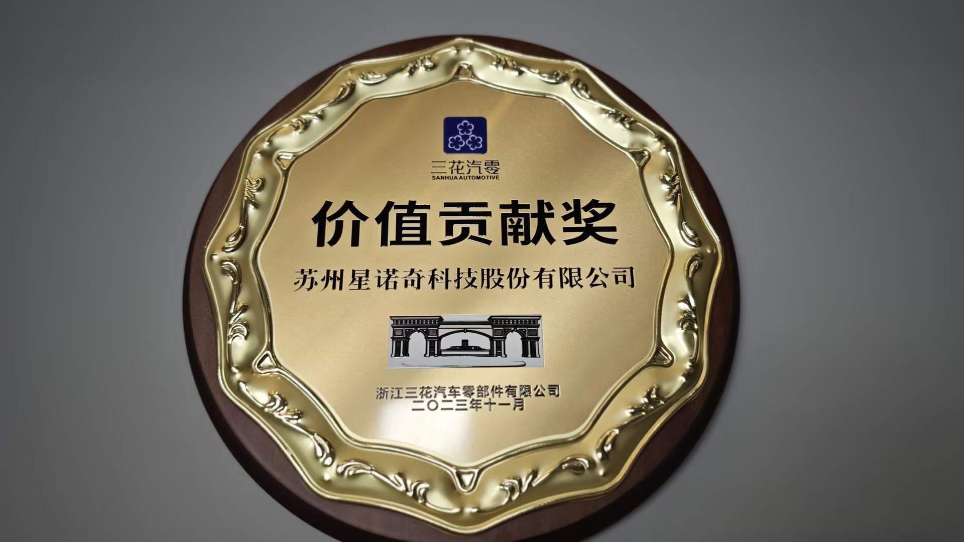 2023年11月17日,以“Partnership & Globalization”为主题的2023年度三花汽零合作伙伴大会在杭州隆重举行。作为三花汽零的供应商合作伙伴,苏州星诺奇科技股份有限公司受邀出席大会,并荣获“价值贡献奖”。
