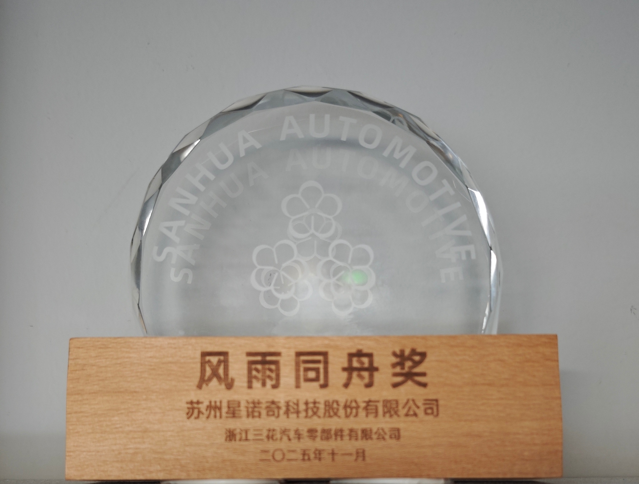 近日,苏州星诺奇科技股份有限公司凭借在精密零部件供应上的卓越表现与紧密协作,荣获浙江三花汽车零部件有限公司颁发的“风雨同舟奖”。